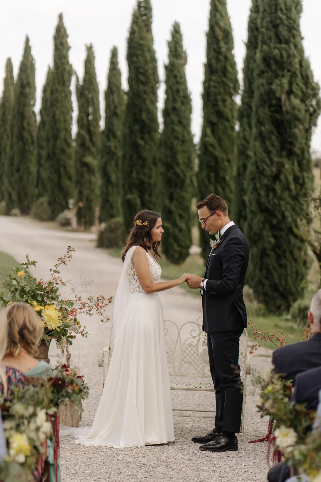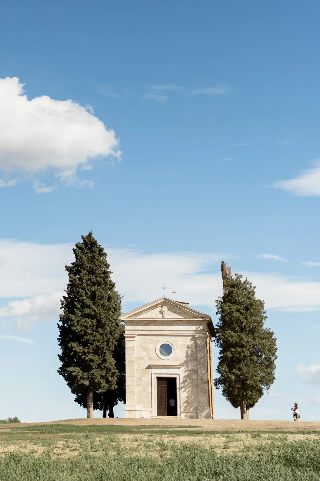 An intimate Tuscan wedding surrounded by nature, silence, and timeless Val d’Orcia landscapes.