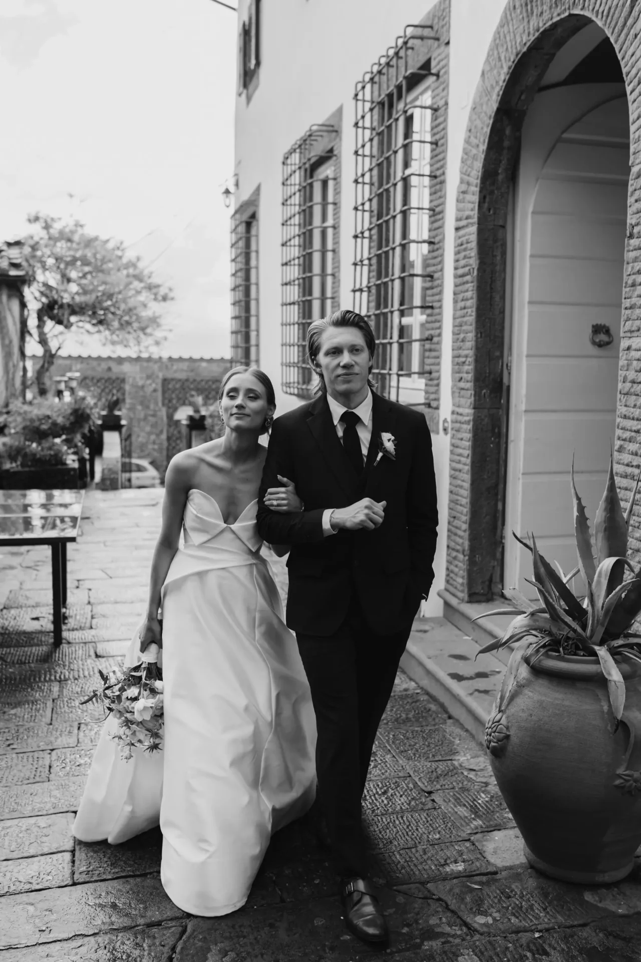 An intimate Tuscan wedding set among vineyards and historic architecture.